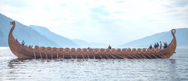 Remains of a burnt ship in a burial mound, dating from the latter half of 9th century, have been named after the farm where they were discovered in Nordfjordeid. This is the largest Viking ship ever found, and the inspiration to this series.
